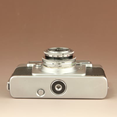 Für Film 24x36mm in AGFA-Karat Kassetten (12 Aufnahmen), seitlicher Schnellaufzug mit integriertem Bildzähler.